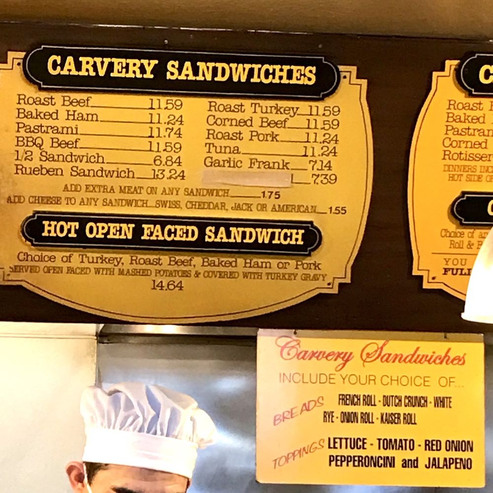 Choice of Hand Carved Entree Includes Mashed Potatoes, Hot Side Order, Dinner Roll, JellO or Ice Cream and Beverage Substitutions are available at an additional charge